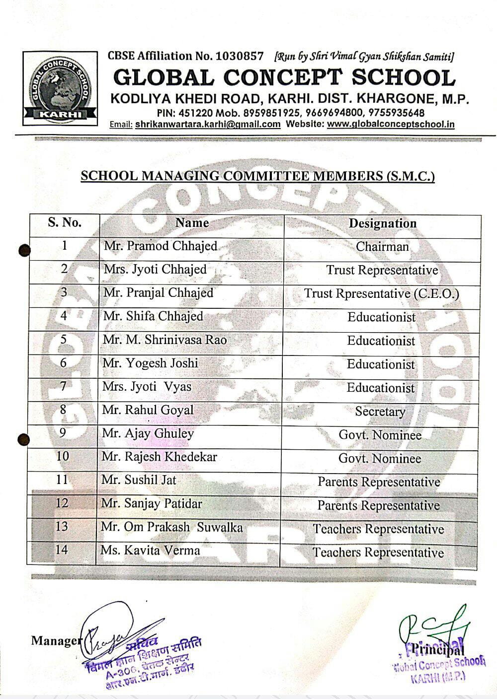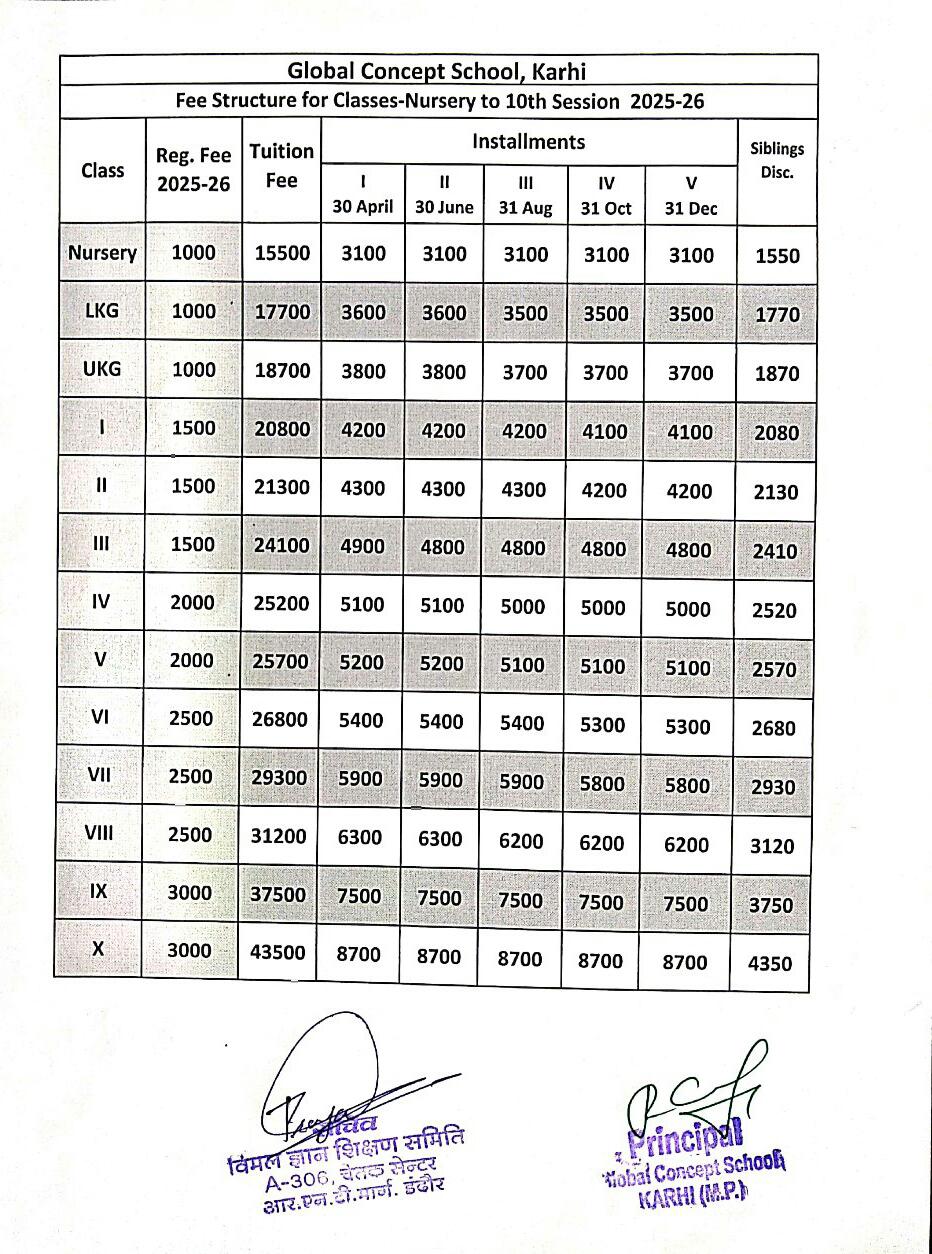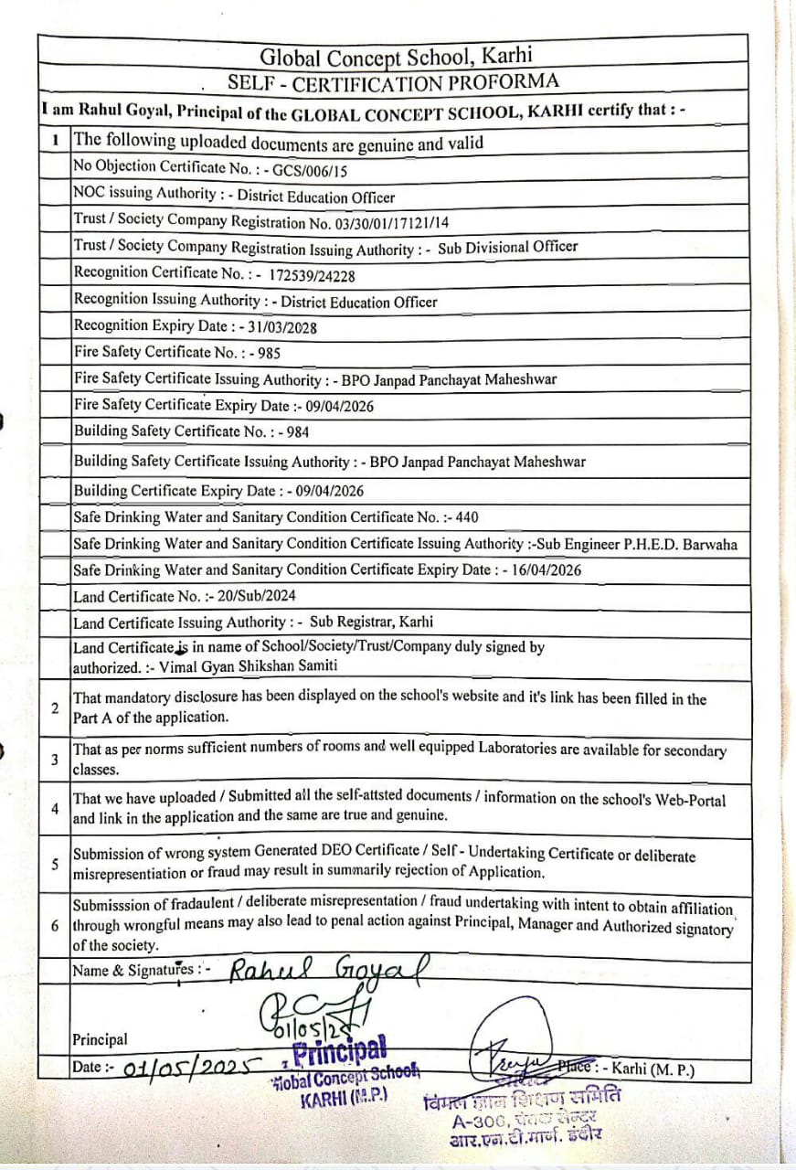 Global Concept School In front of Abhayraj Ginning Kodliyakhedi Road, Karhi PIN - 451220 DIST. - Khargone (M.P.)
