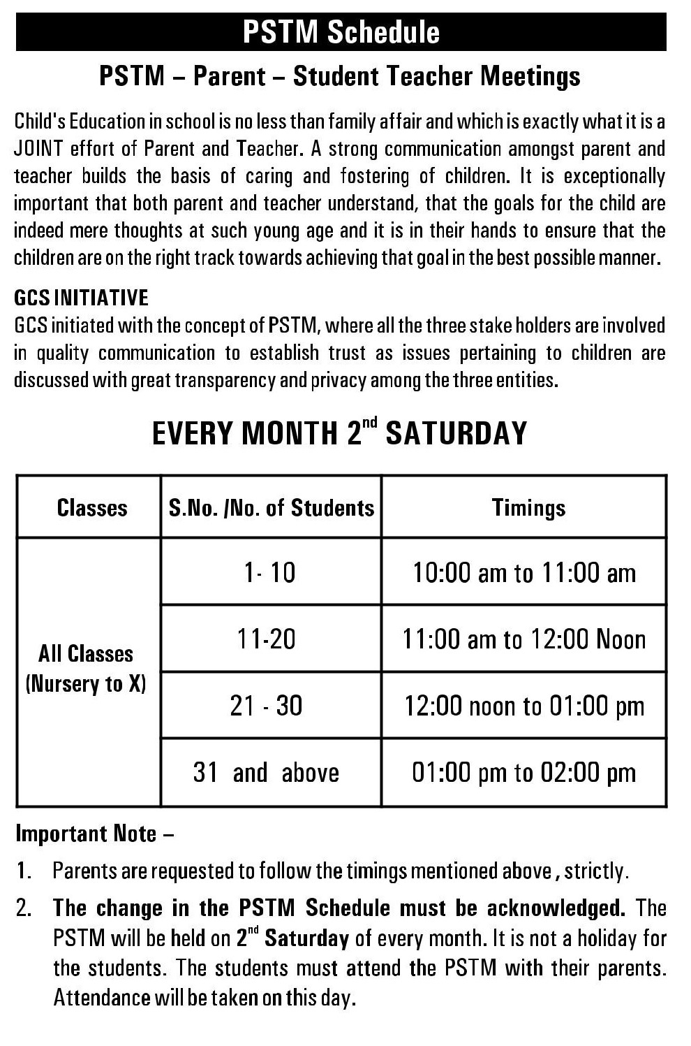 PSTM Schedule
