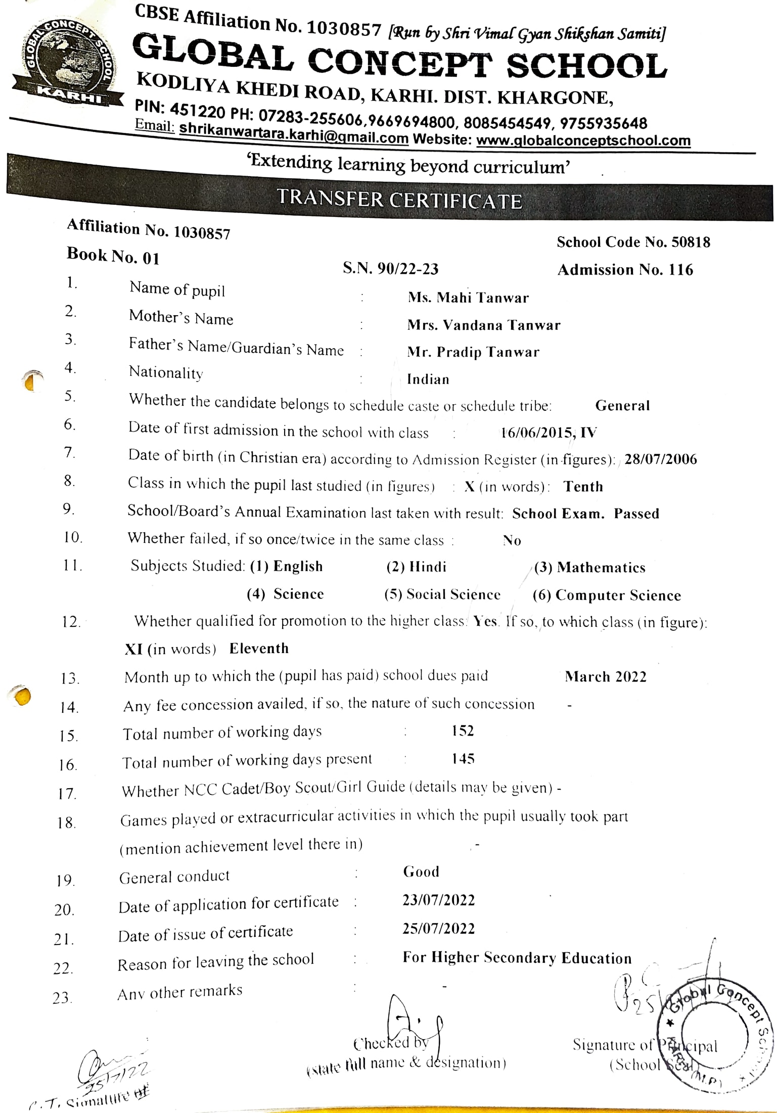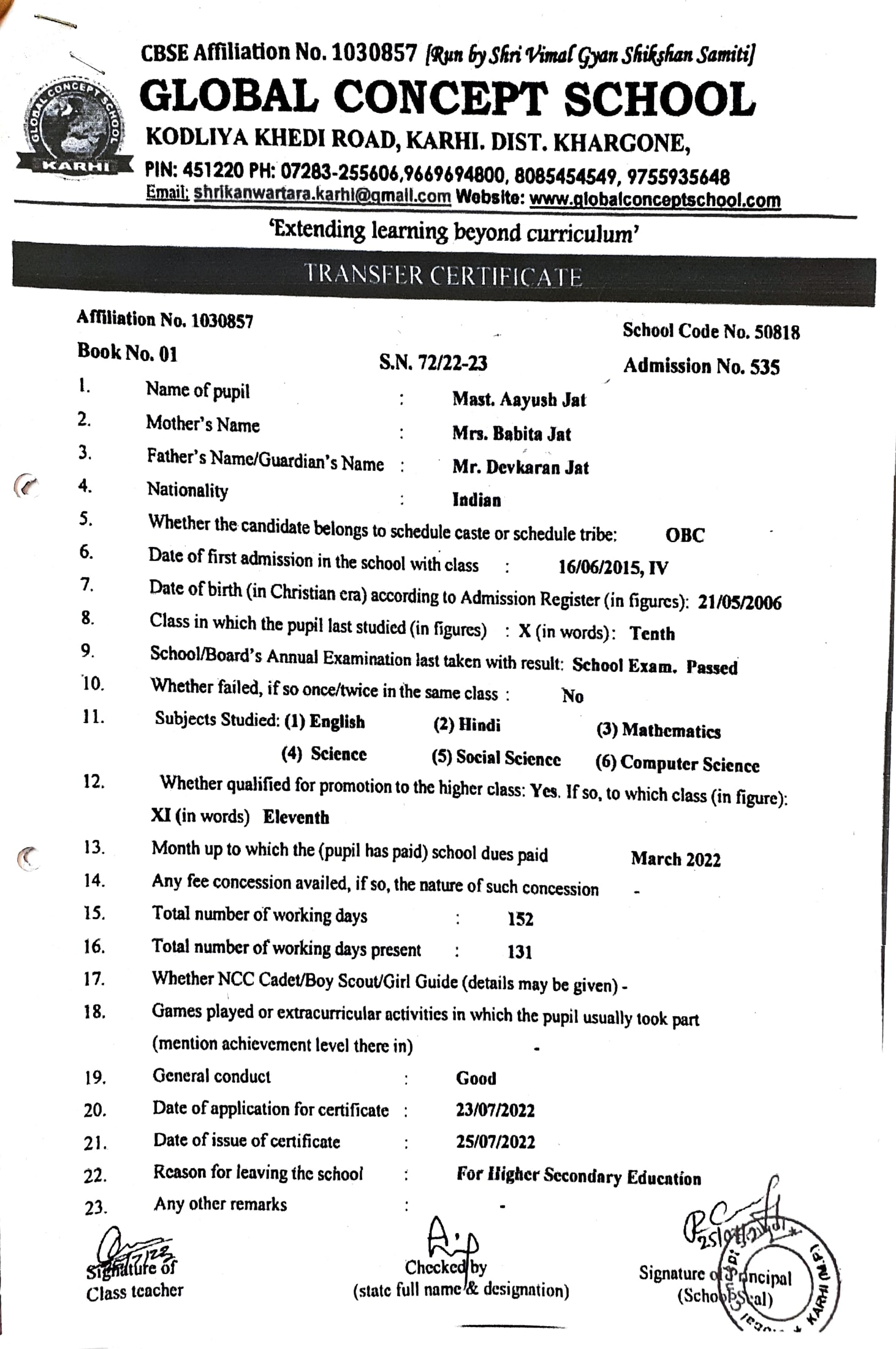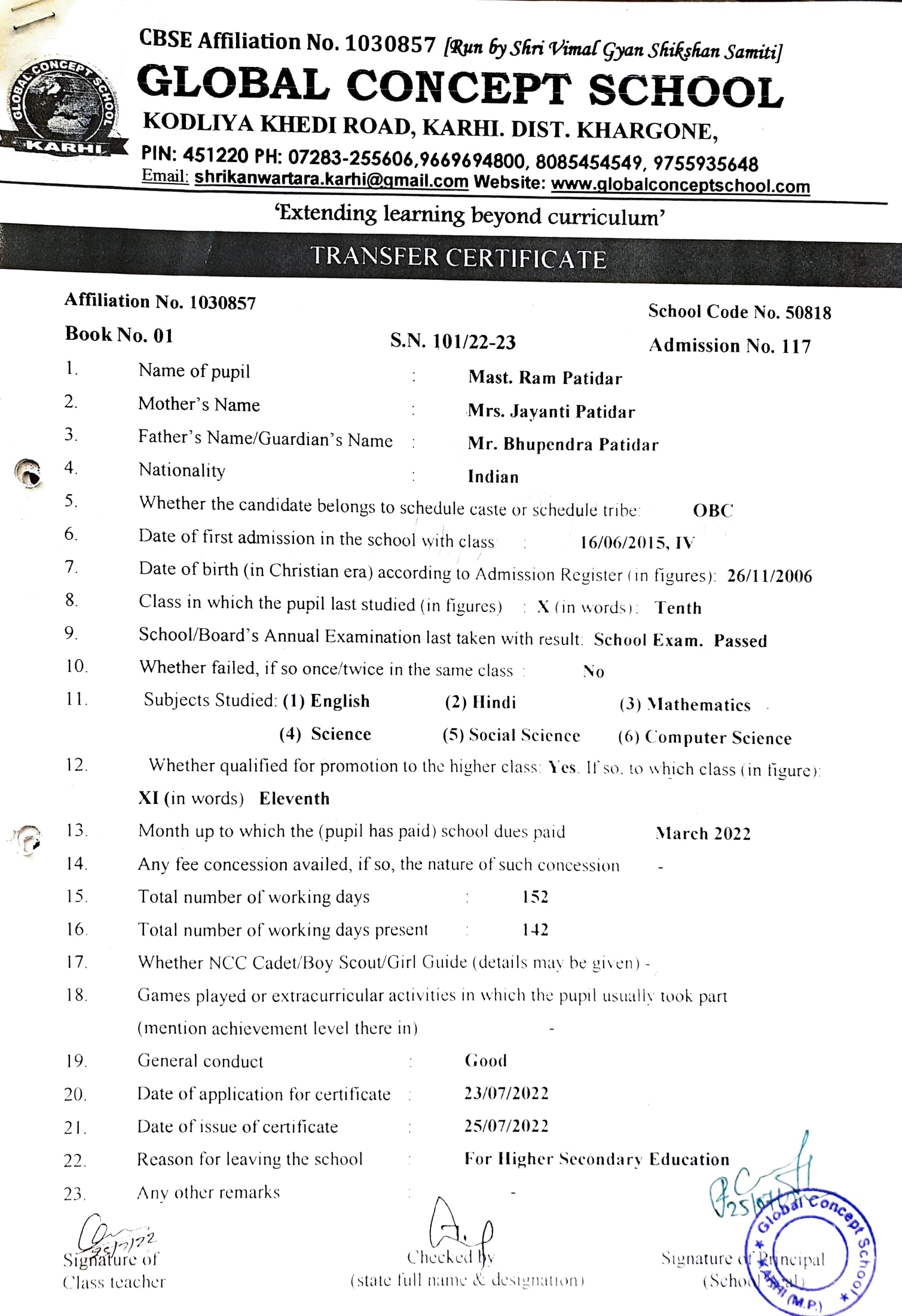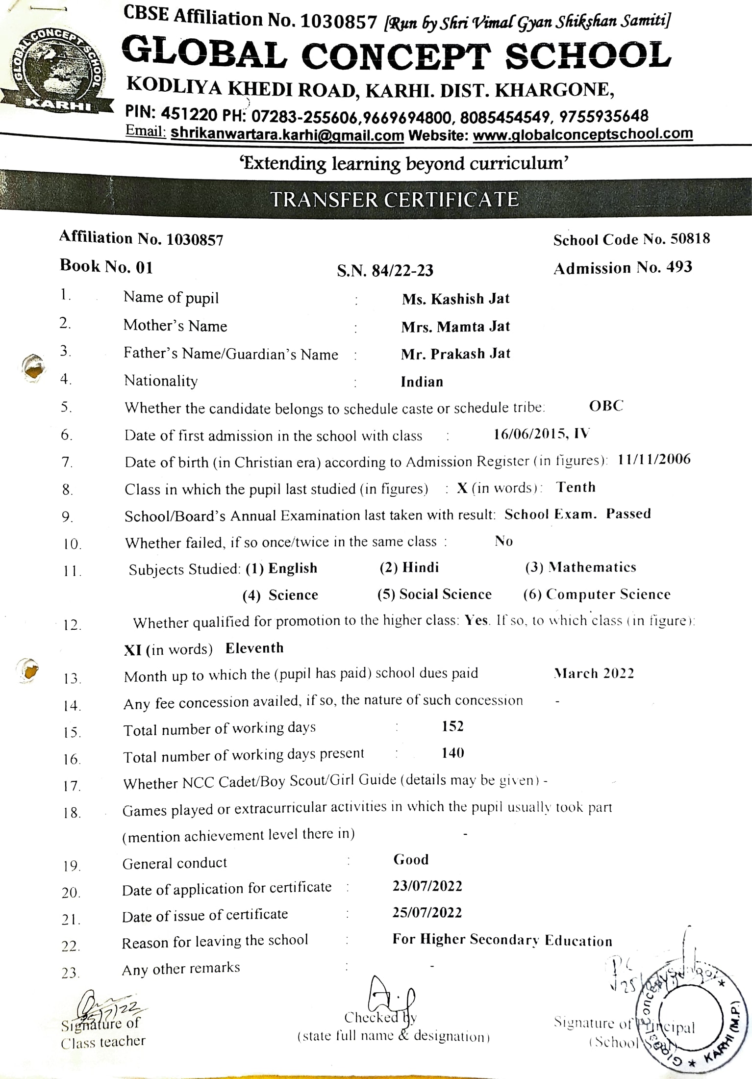 Global Concept School In front of Abhayraj Ginning Kodliyakhedi Road, Karhi PIN - 451220 DIST. - Khargone (M.P.)
