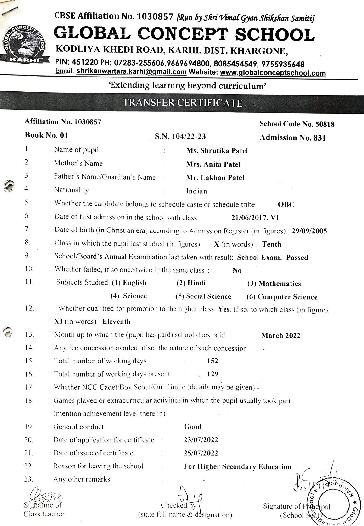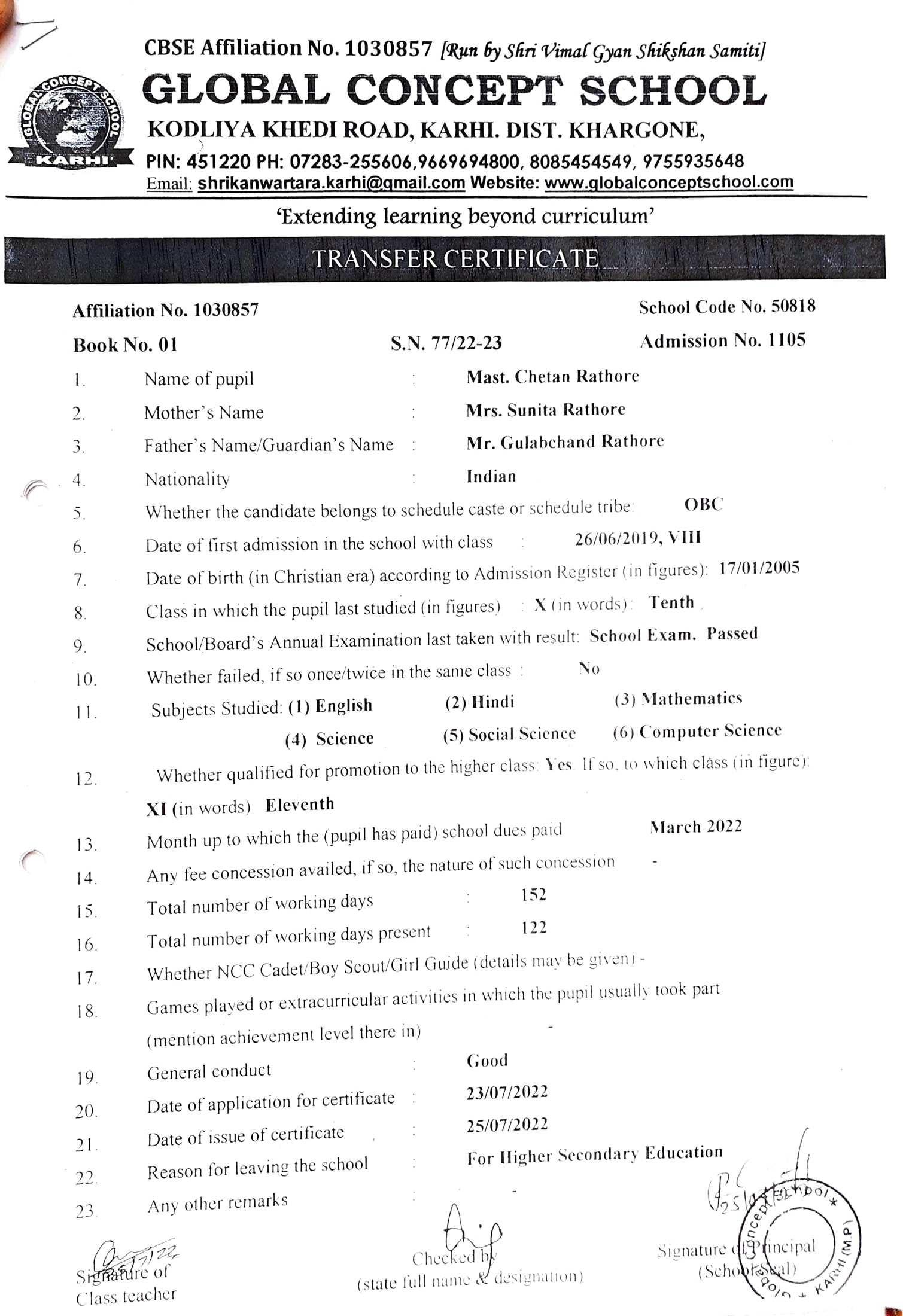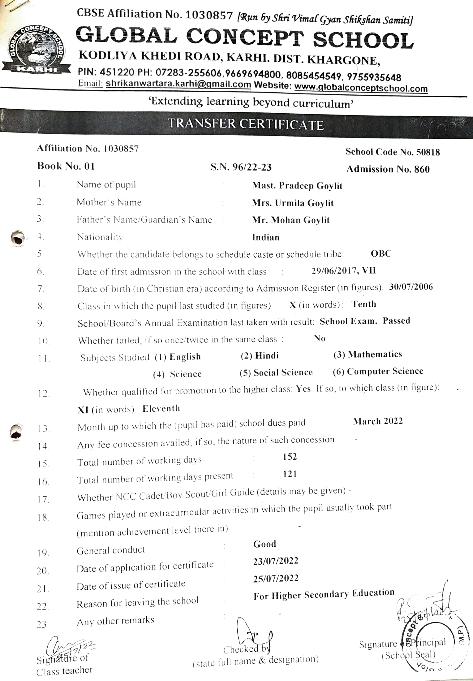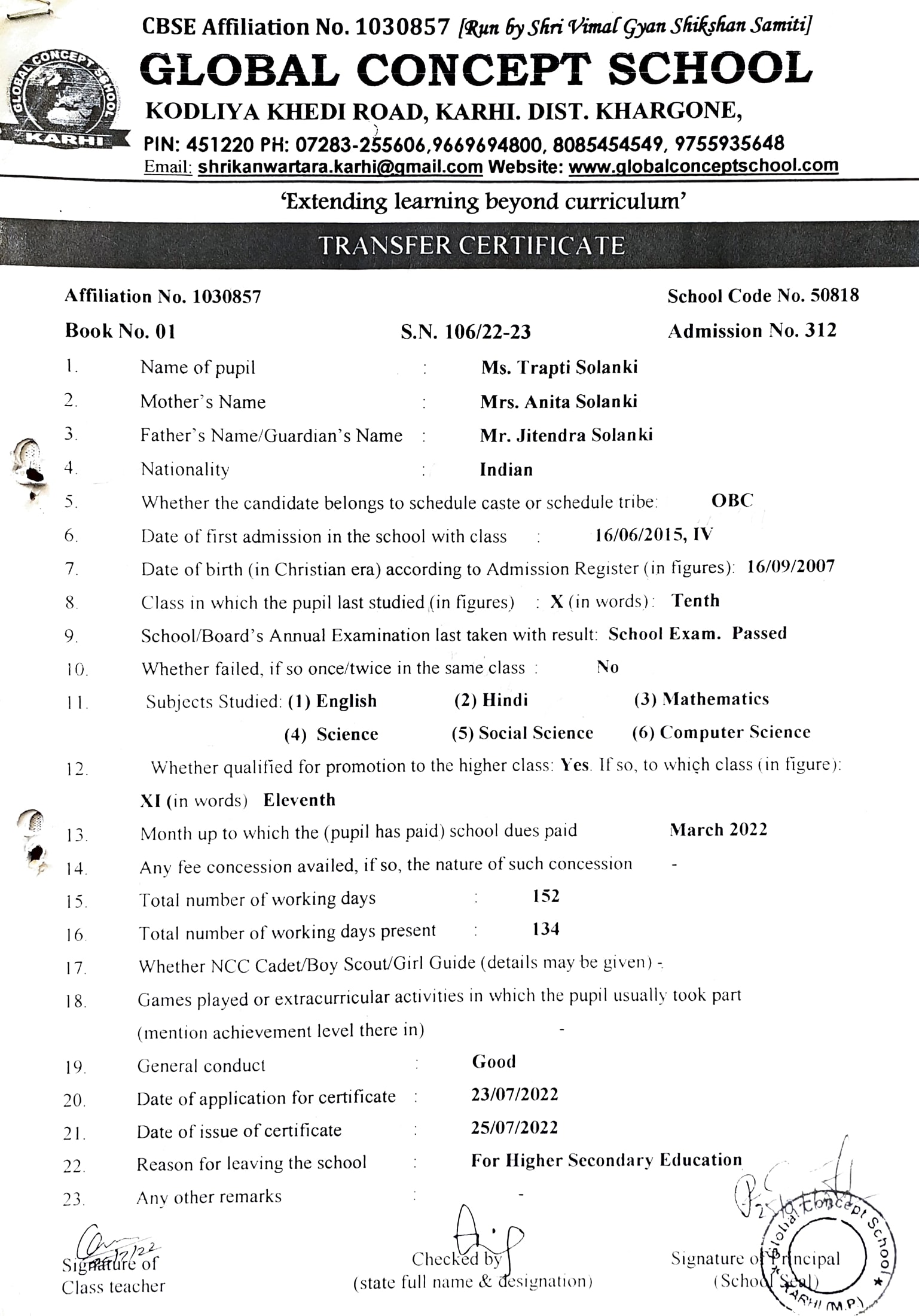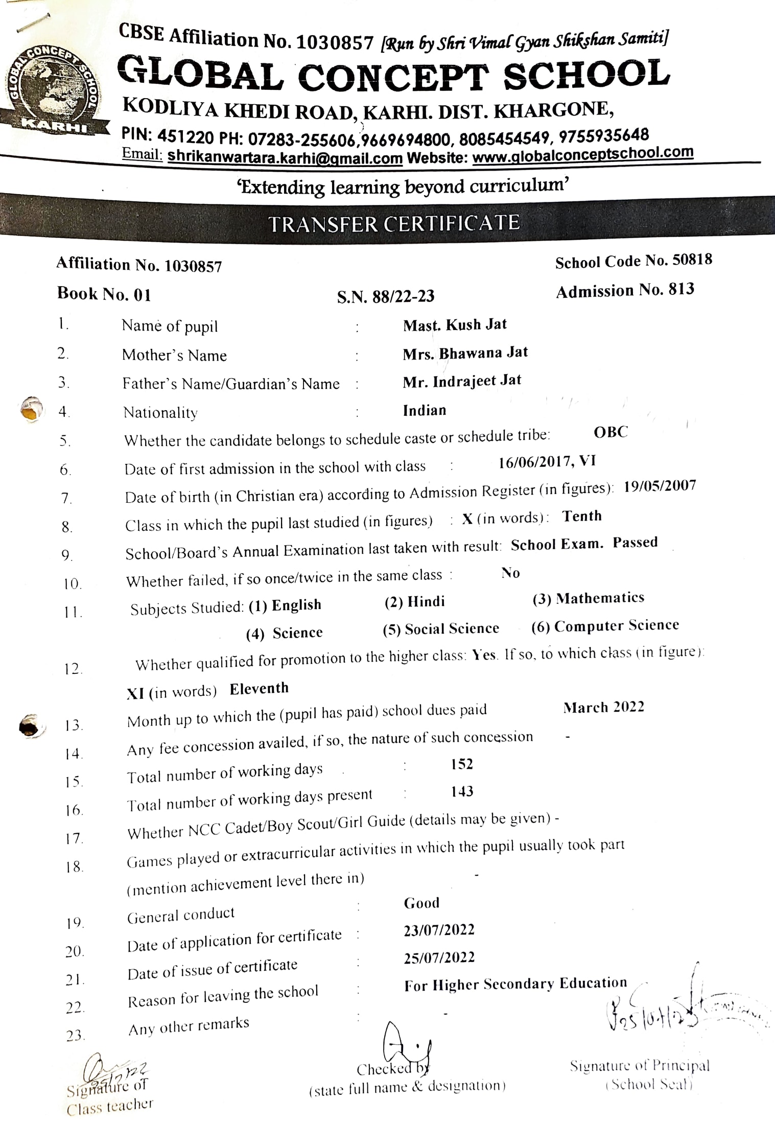 Global Concept School In front of Abhayraj Ginning Kodliyakhedi Road, Karhi PIN - 451220 DIST. - Khargone (M.P.)