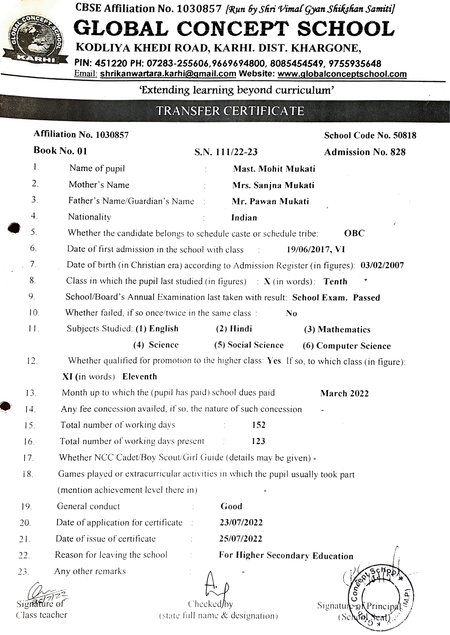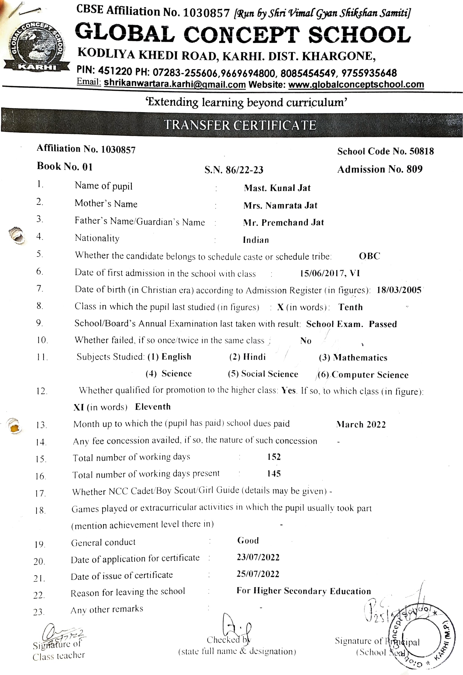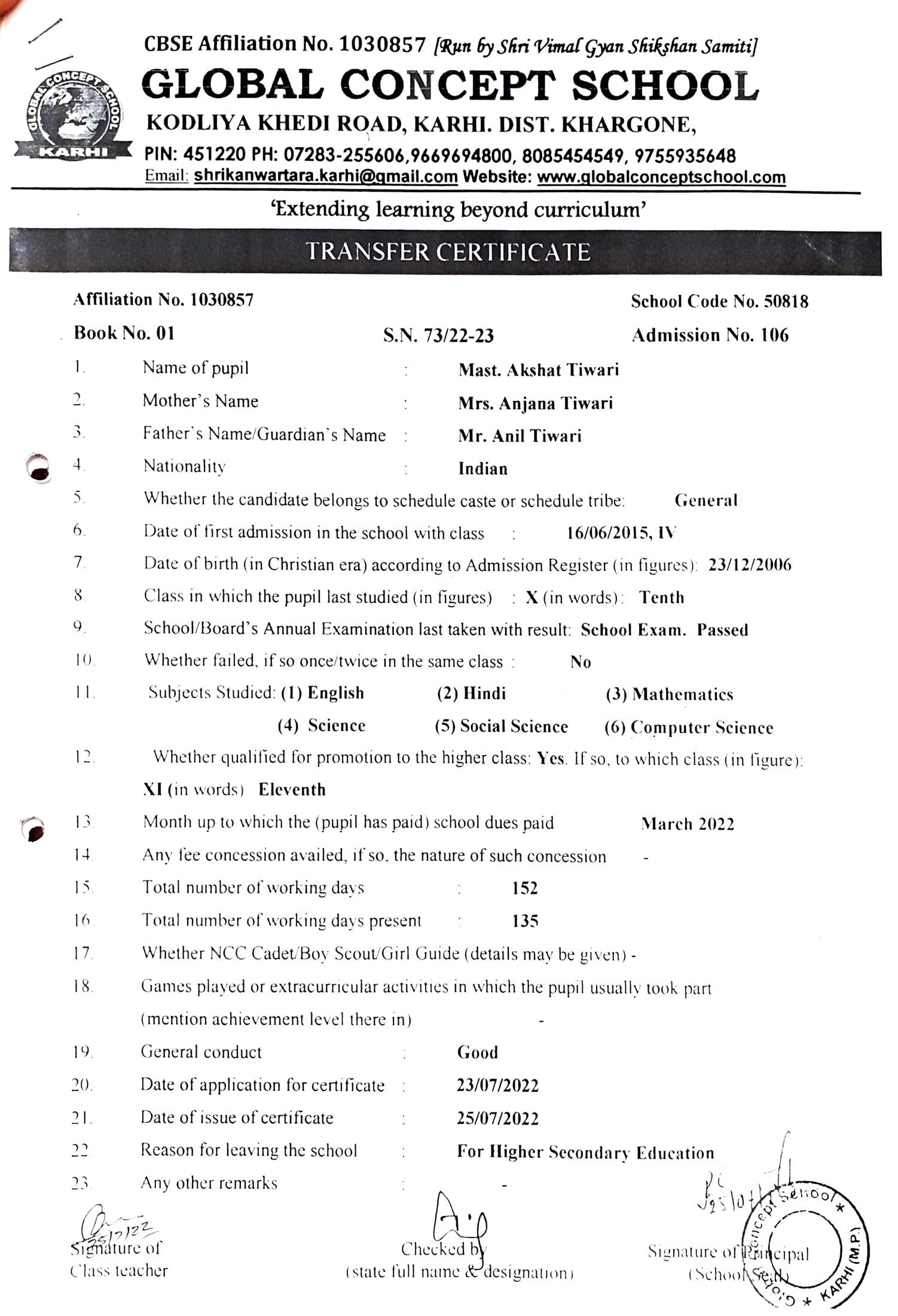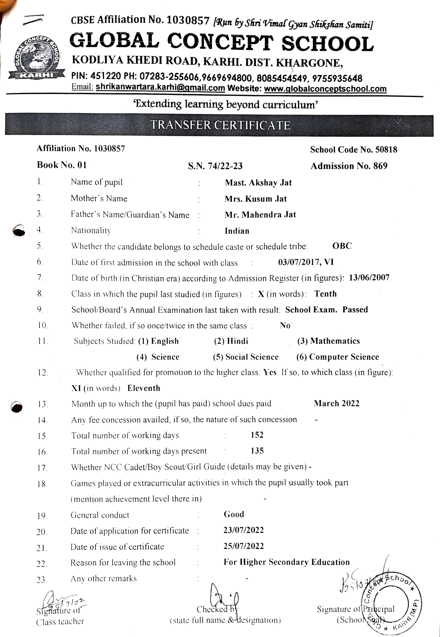 Global Concept School In front of Abhayraj Ginning Kodliyakhedi Road, Karhi PIN - 451220 DIST. - Khargone (M.P.)