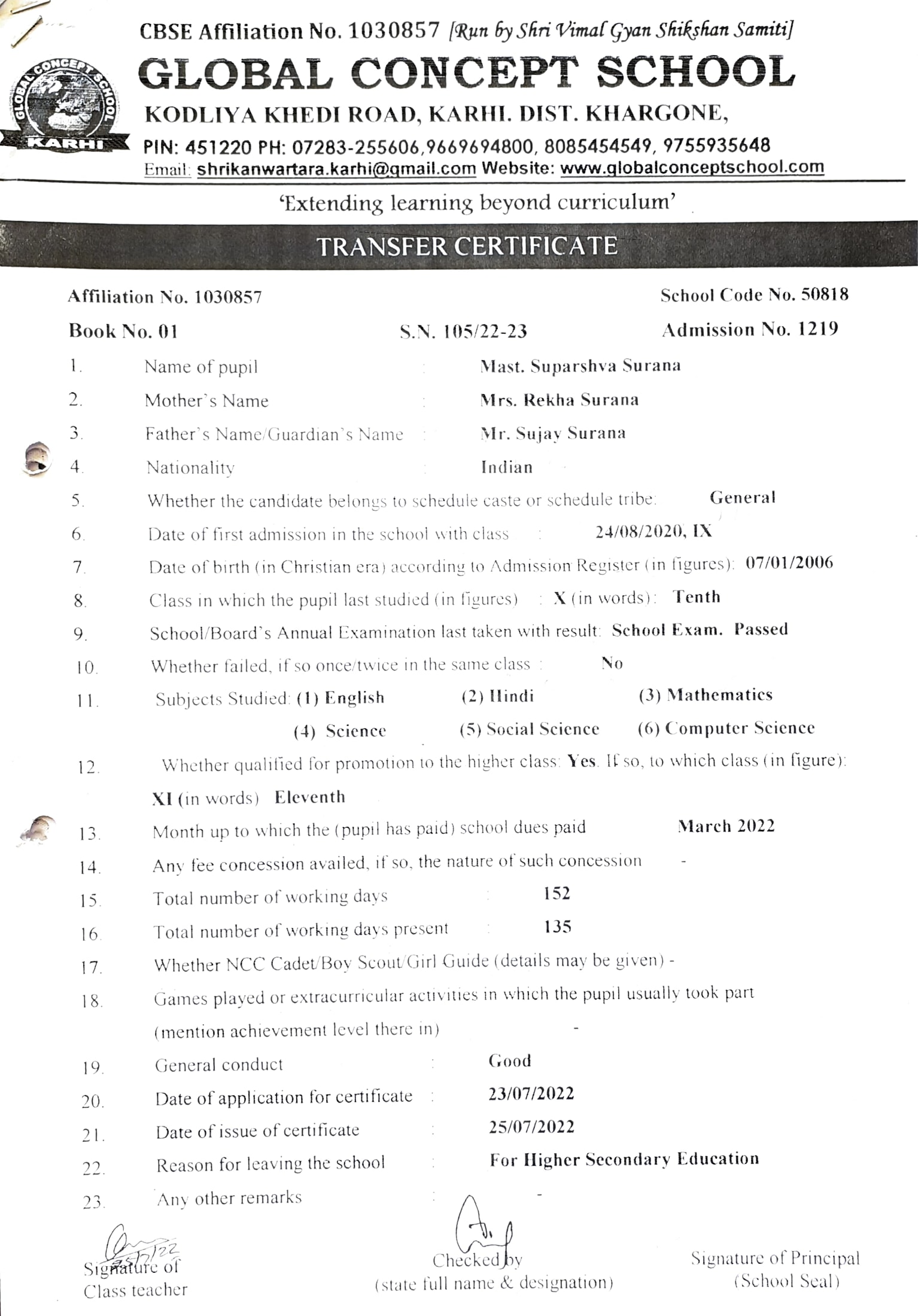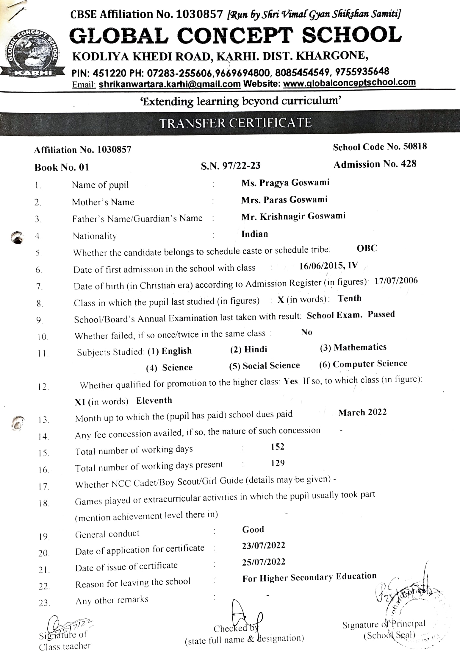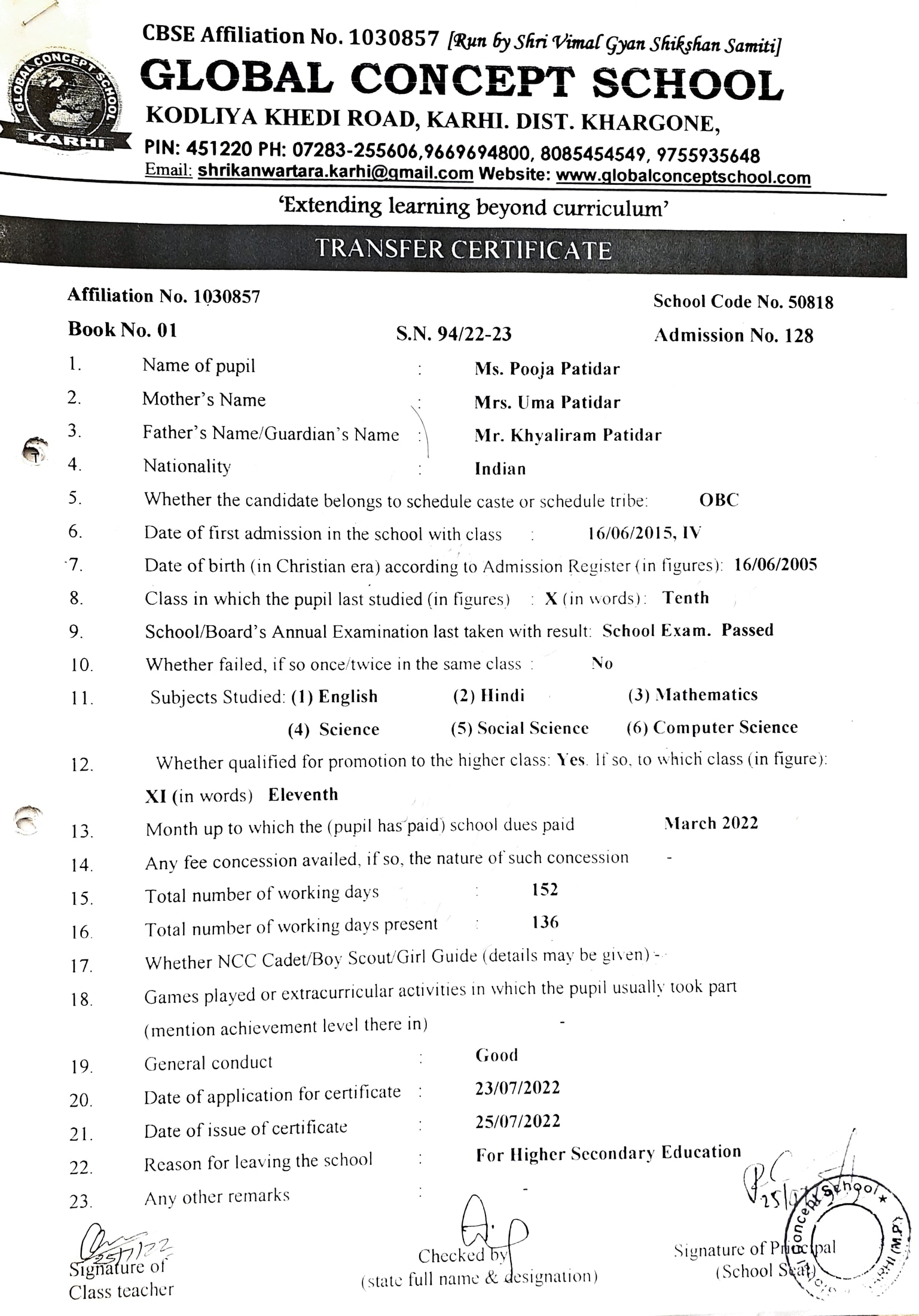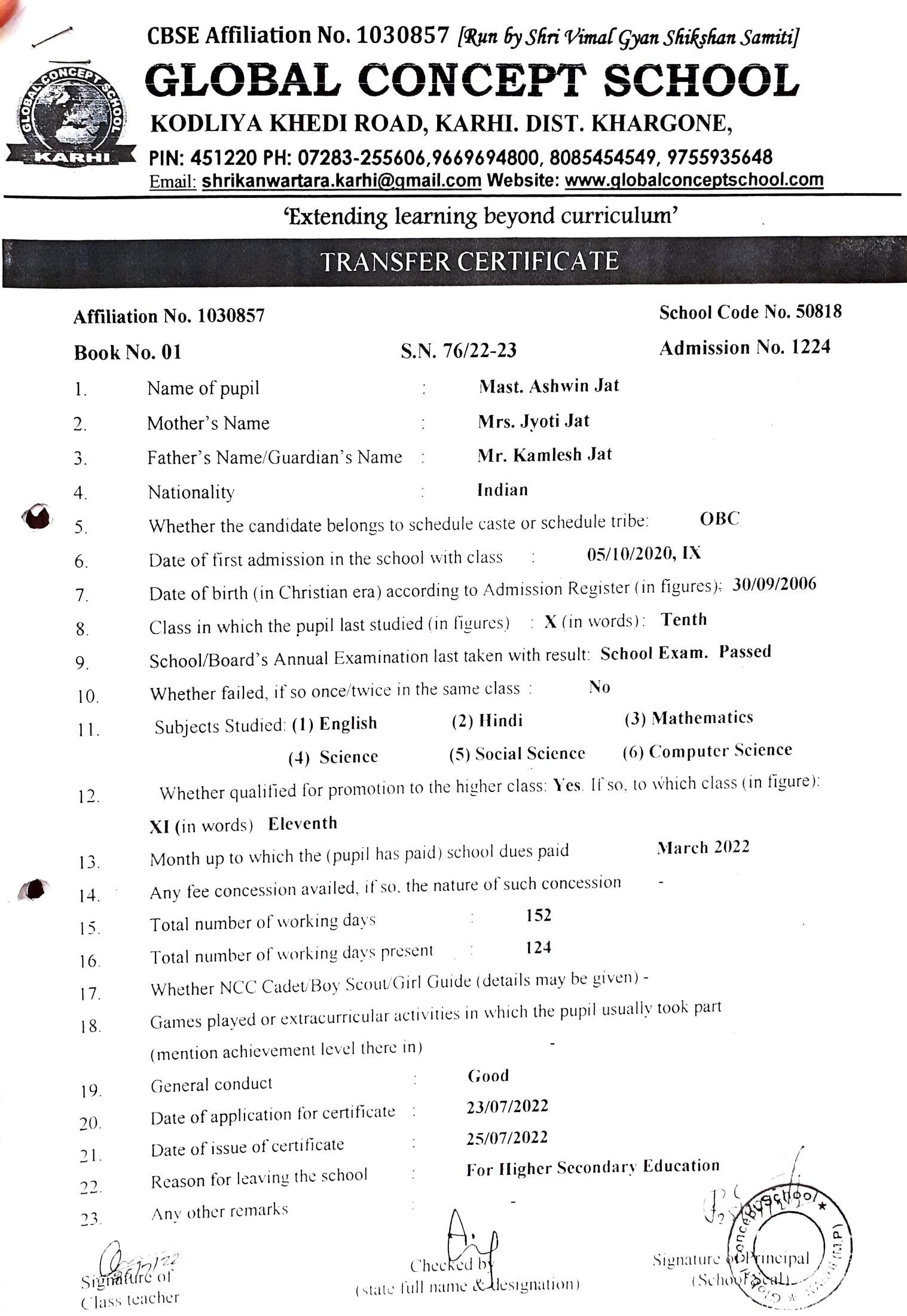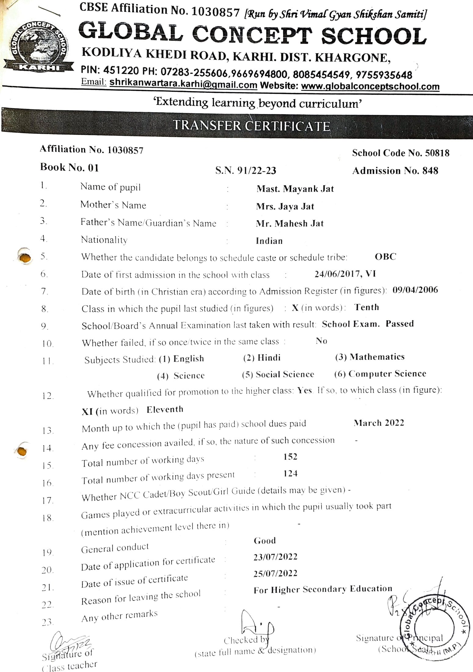 Global Concept School In front of Abhayraj Ginning Kodliyakhedi Road, Karhi PIN - 451220 DIST. - Khargone (M.P.)