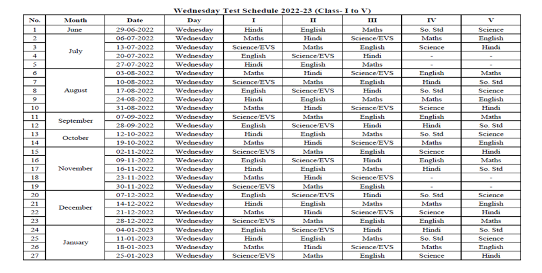 Wednesday Test Schedule